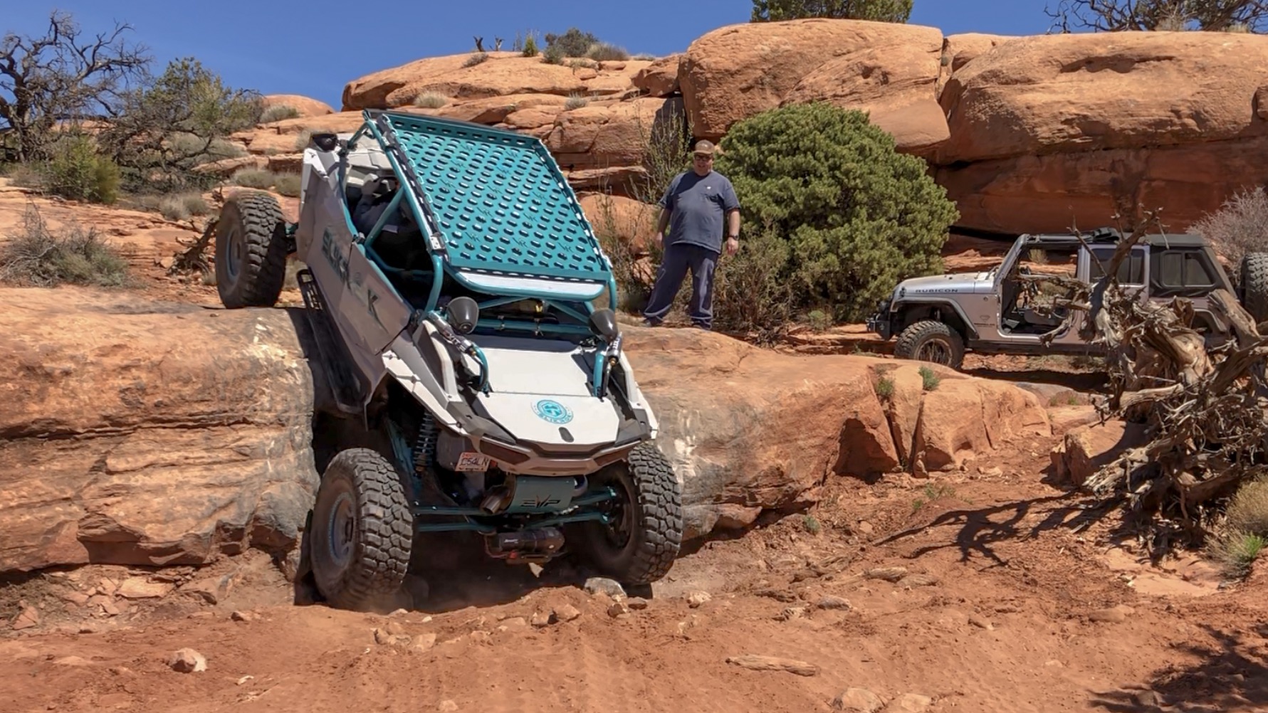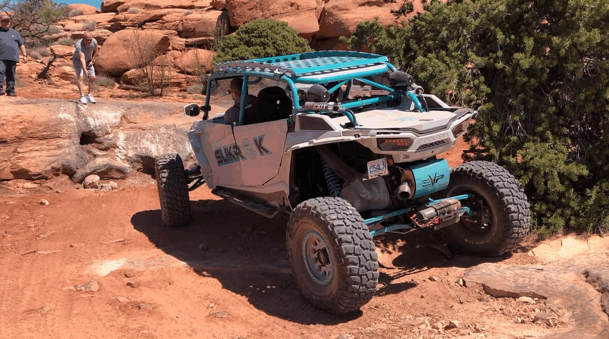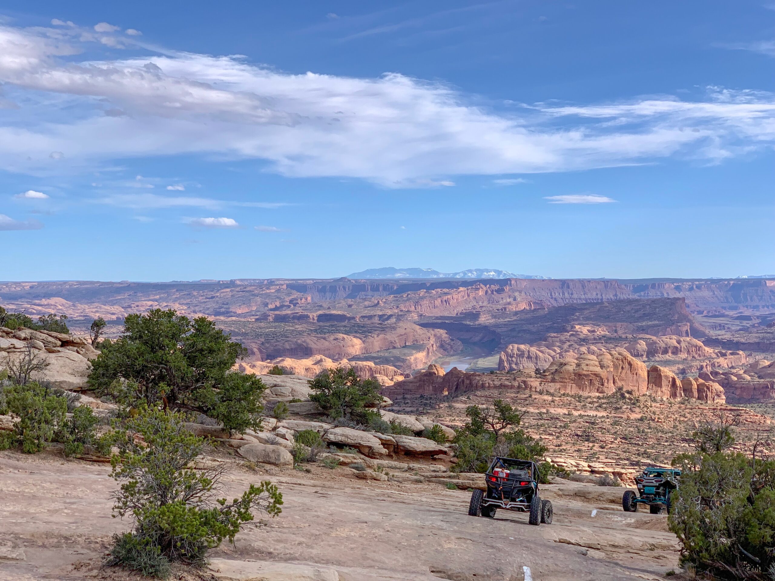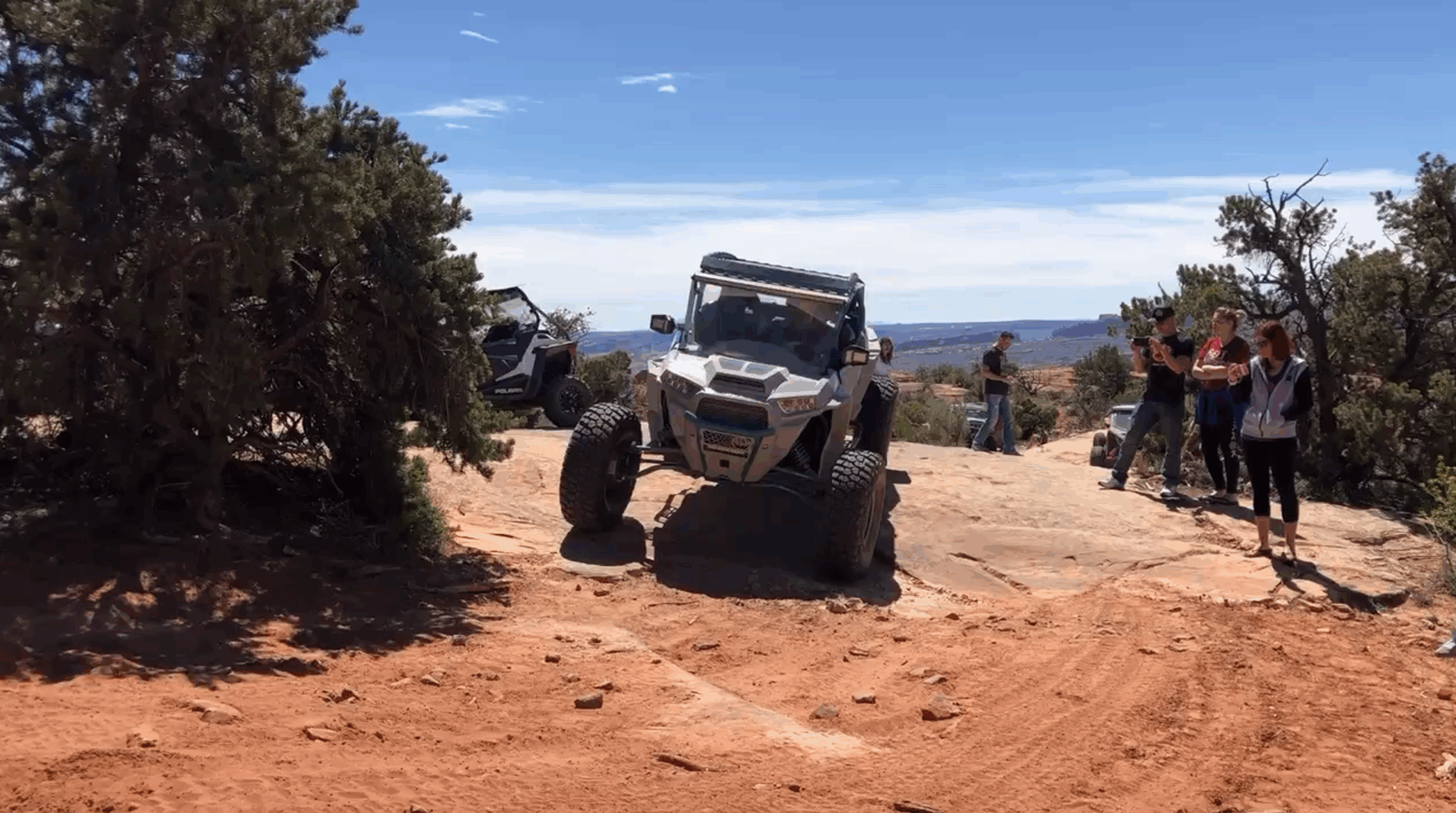 Trail consists of rock; sand and considerable slickrock with many steps exceeding 30″. Steep inclines and declines are prevalent. Enhanced off road equipment is required including, machine minimum 64″ wide, tall tires (32″+ required), maximized vehicle ground clearance and suspension travel. A winch is advisable. Roll over and vehicle damage possibilities exist.