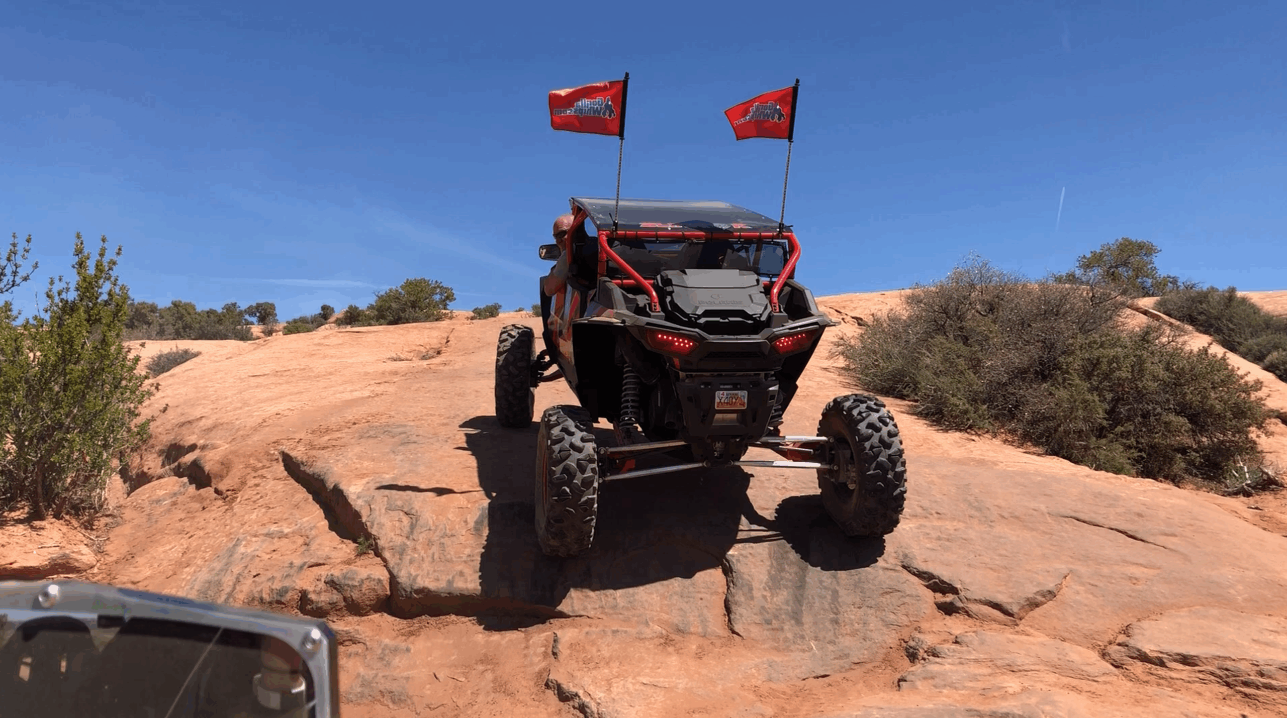 Parking: If you are driving a street legal SxS to the lot, be sure to obey the law and drive to the far right while on the HWY and do not exceed 50 mph. There is ample parking at the Gemini Bridges Trailhead parking lot located at coordinates 38.65651,-109.67775. However this lot will be shared by drivers for Metal Masher and Gold Bar Rim. Pay attention to park facing south, and start parking at the north end of the lot to leave room for incoming and outgoing trucks and trailers. Please park in an orderly fashion and do not leave large spaces between trailers. You are strongly encouraged to trailer to the parking lot as the lot is several miles North of Moab.